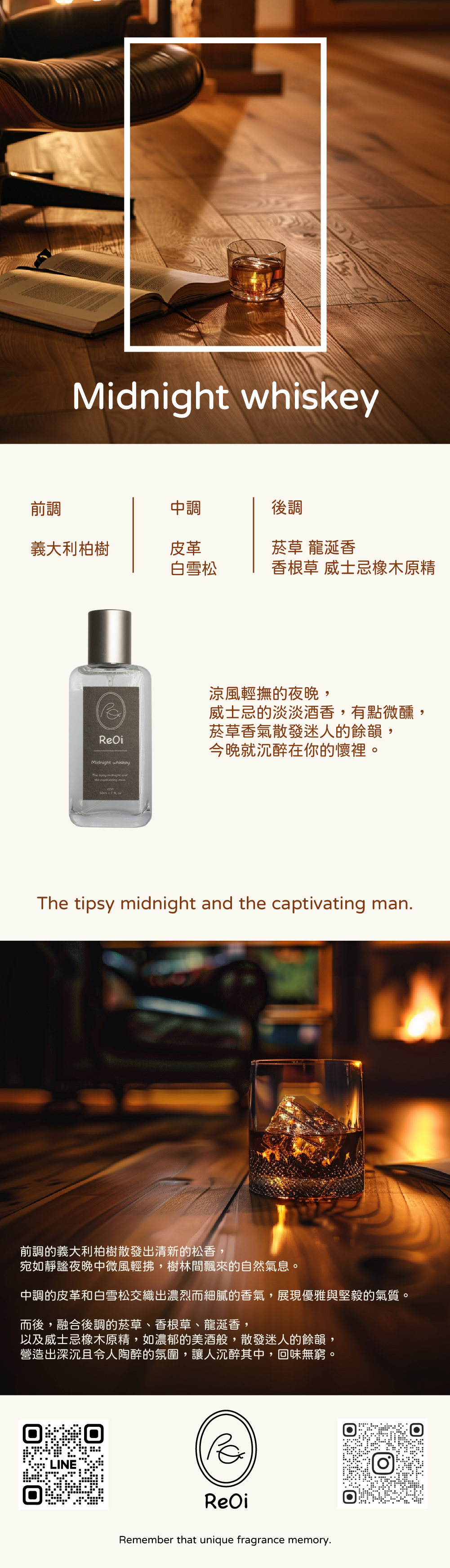 涼風輕撫的夜晚,威士忌的淡淡酒香,有點微醺,菸草香氣散發迷人的餘韻,今晚就沉醉在你的懷裡。
