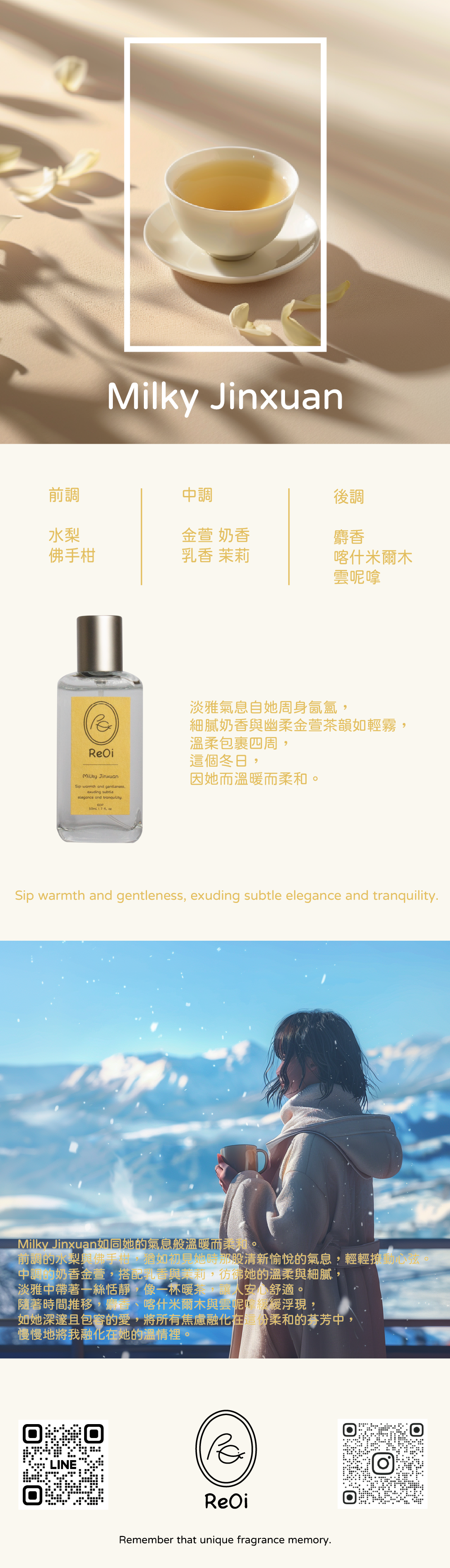 淡雅氣息自她周身氤氳,細膩奶香與幽柔金萱茶韻如輕霧,溫柔包裹四周,這個冬日,因她而溫暖而柔和。