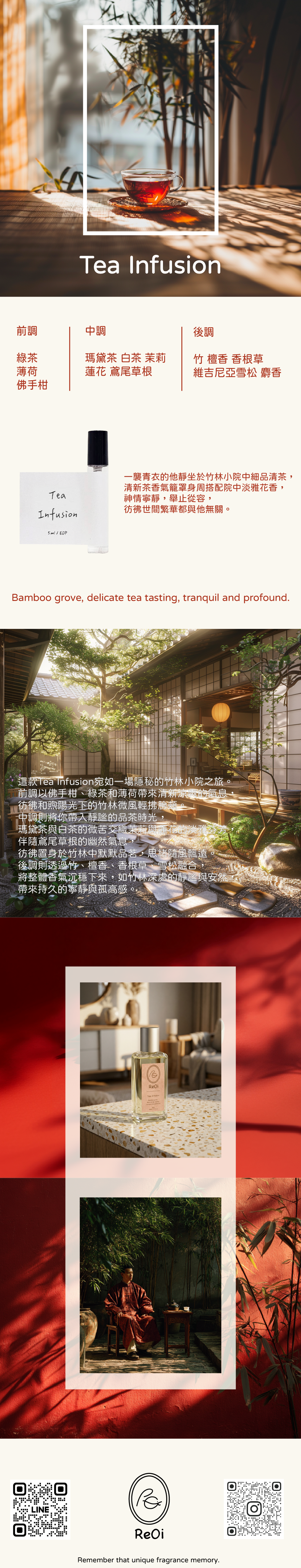 Bamboo grove, delicate tea tasting, tranquil and profound.